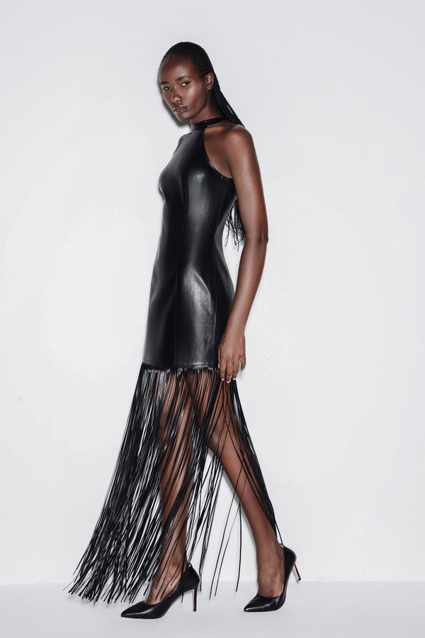Vegan Leather Fringe Maxi Dress
