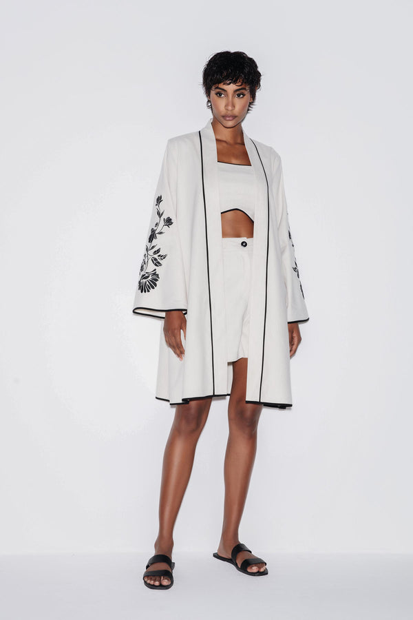Linen Floral Maxi KimonoLinen Floral Maxi Kimono