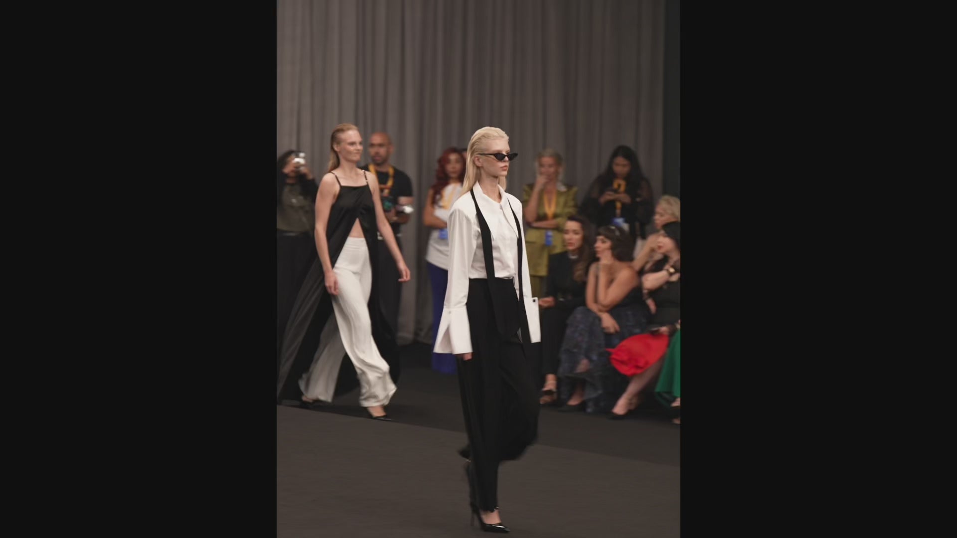 Elevate your wardrobe with our elegant tailored ensemble, featuring a sophisticated long-sleeve shirt with an iconic pointed collar and padded shoulders, paired with chic wide-leg trousers. Crafted from high-quality cotton poplin and thick crepe for unparalleled style and comfort.