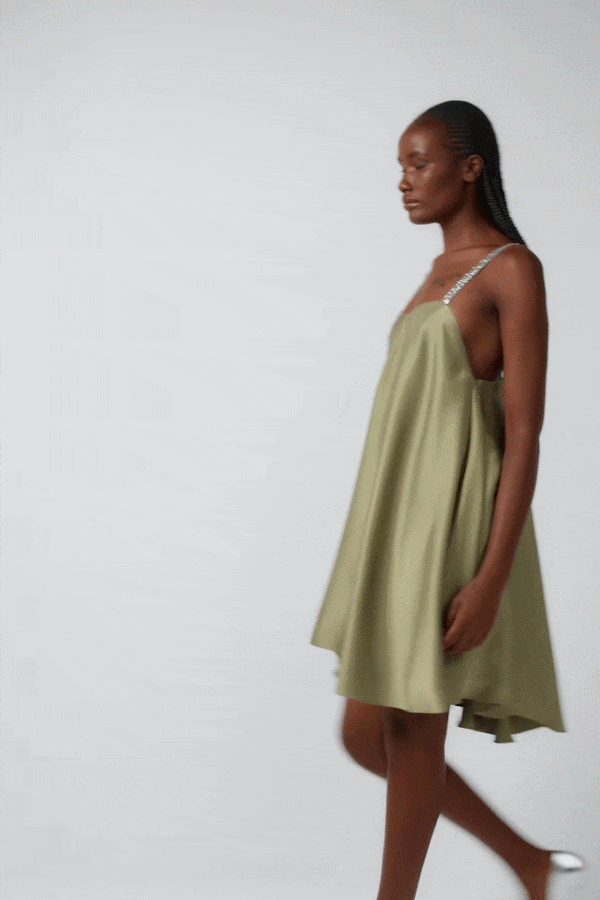 Turn heads in our "Crystal Sweetheart Mini Dress." This luxurious satin crepe design features a romantic sweetheart neckline and an alluring open back, adorned with delicate crystal applications, creating a stunning, sophisticated look perfect for any upscale event.