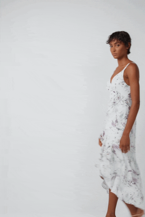 Embrace elegance in our "Garden Sophistication Midi Dress." This beautiful floral printed chiffon design features exquisite pleating and layering details on the front, enhanced by crystal applications on the shoulder stripes, making it a captivating choice for any refined occasion.