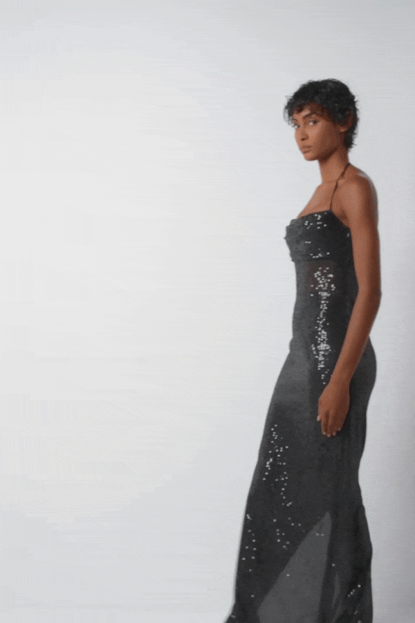 Embrace timeless glamour with our "Glistening Elegance Dress." This exquisite sequined maxi features a fitted silhouette, a soft neckline, and a delicate tulle waist insert, creating a breathtaking look for any special occasion.