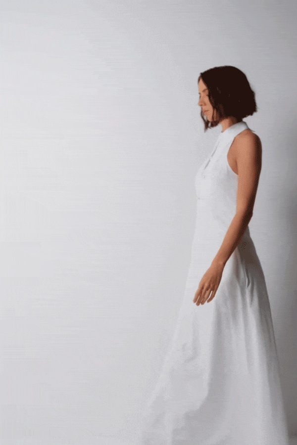 - Plain poplin maxi dress with Lili Blanc iconic collar