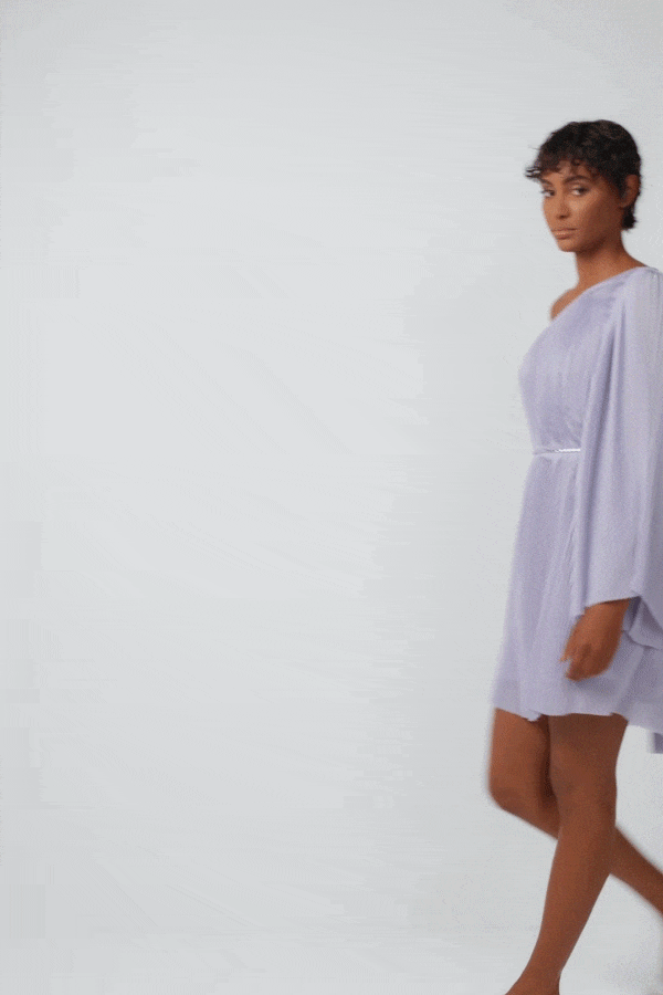 • Asymmetrical pleated chiffon mini dress with single wise sleeve