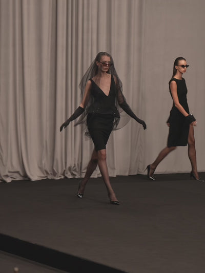 Discover timeless elegance with our sleeveless tailored dress, featuring a deep V neckline and a sculpted waist with a peplum detail. The knee-length hem creates a refined silhouette, perfect for any occasion. Crafted from luxurious thick crepe for an impeccable fit.