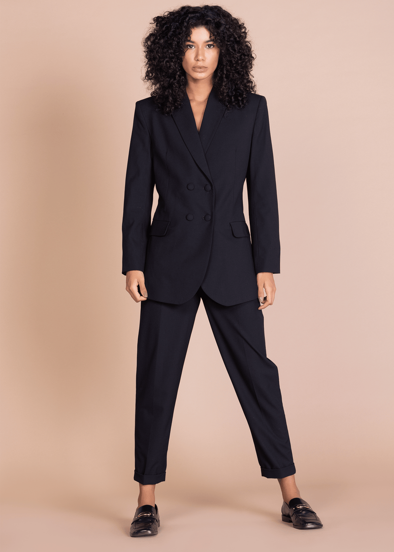 Double-breasted oversize blazer in comfortable 2-way stretch fabric. With notch lapels & welt pockets with flap.